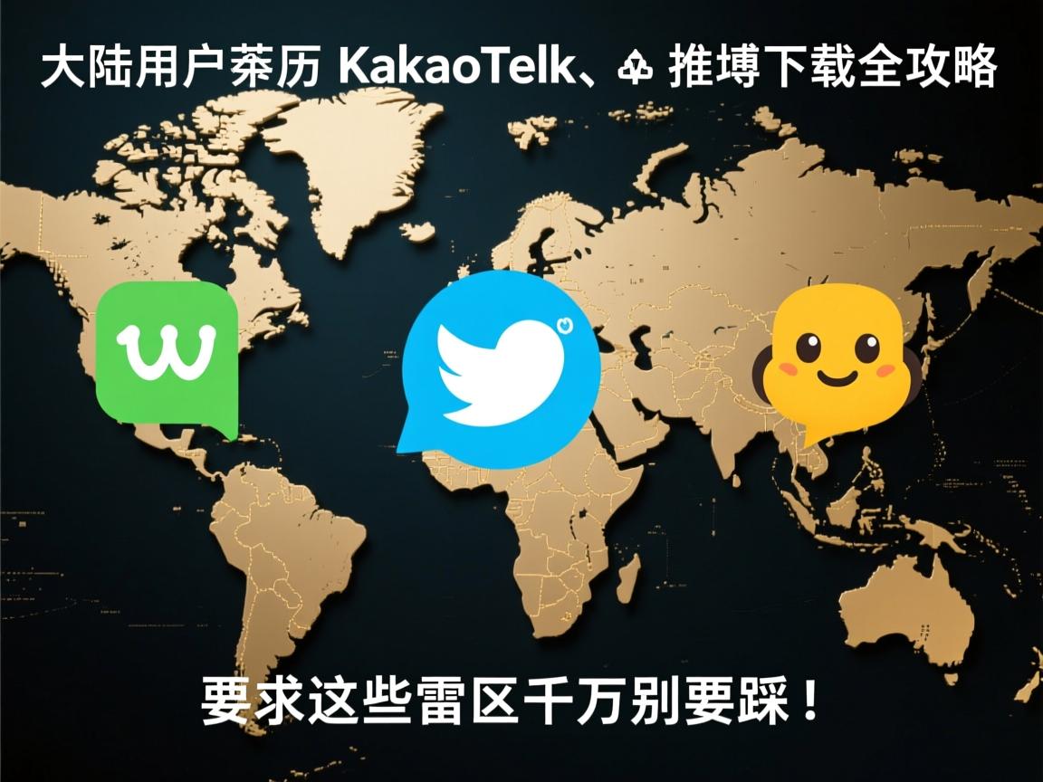 ,** 本文为大陆用户提供亲测有效的 KakaoTalk 和 Twitter 下载使用攻略,重点在于规避常见“雷区”,指导用户安全、顺利地完成下载、安装及基础使用流程,避免因操作不当导致失败或风险,核心是实用方法与风险提示。,**说明:**,1. **核心信息提取:** 抓住了“大陆用户”、“KakaoTalk/推特下载”、“攻略”、“雷区/避坑”这几个关键点。,2. **内容概括:** 点明这是“亲测有效”的攻略,目的是“安全、顺利”地完成下载安装和基础使用。,3. **强调重点:** 突出了“规避雷区”和“避免失败/风险”的核心警示信息。,4. **语言精炼:** 在限定字数内清晰表达了主要内容。,5. **中立客观:** 摘要本身不涉及具体操作细节或对政策的评价,仅反映原文意图。